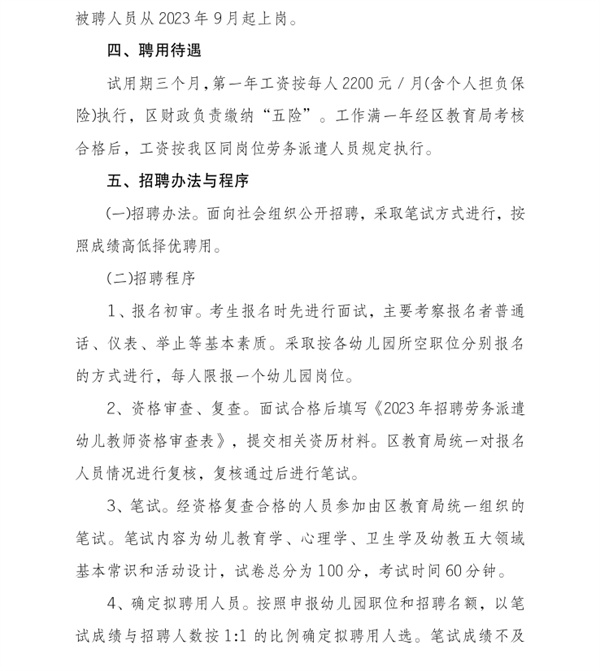 工资待遇为每人每月2200元(含社会保险个人部分),月休4天假,缴纳养老、工伤、失业、医疗、生育等社会保险。